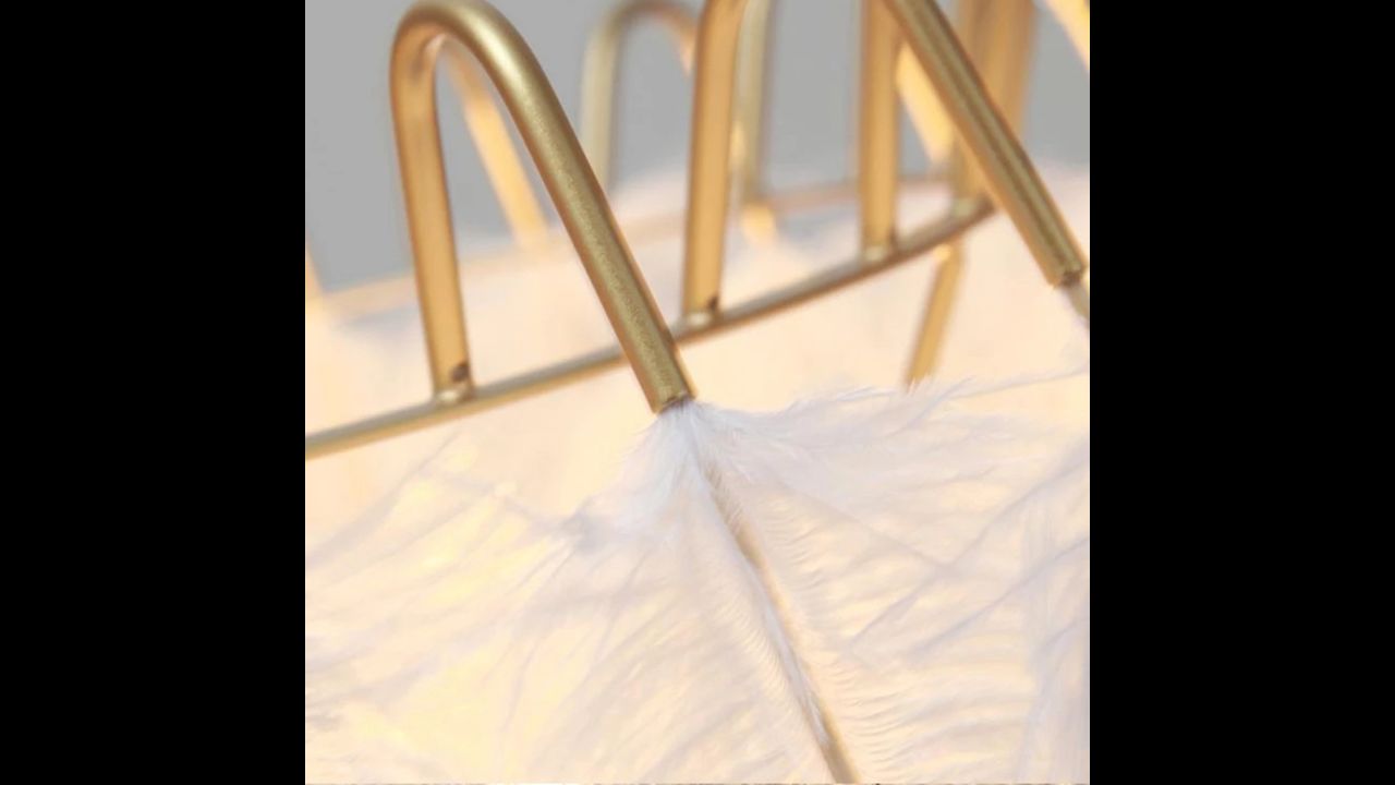 Egy kivételesen szép tollas lámpát mutatunk be Önnek Glamour stílusban. A lámpa kiváló minőségű fémből készült, amely ellenáll a karcolásoknak és a mechanikai sérüléseknek. Minden karaktert és elegáns jegyet tollak adnak hozzá, amelyek gyönyörű és eredeti hatást keltenek.