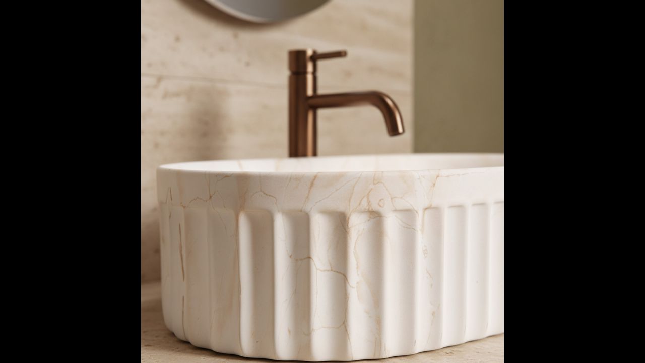 A Georgia pultra szerelhető mosdó tökéletes választás azoknak, akik eredeti, mégis praktikus fürdőszobai elemeket keresnek. A bordázott dizájn és a matt kőmintázat egységes egészet alkot, amely bármely modern fürdőszoba meghatározó pontja lesz.